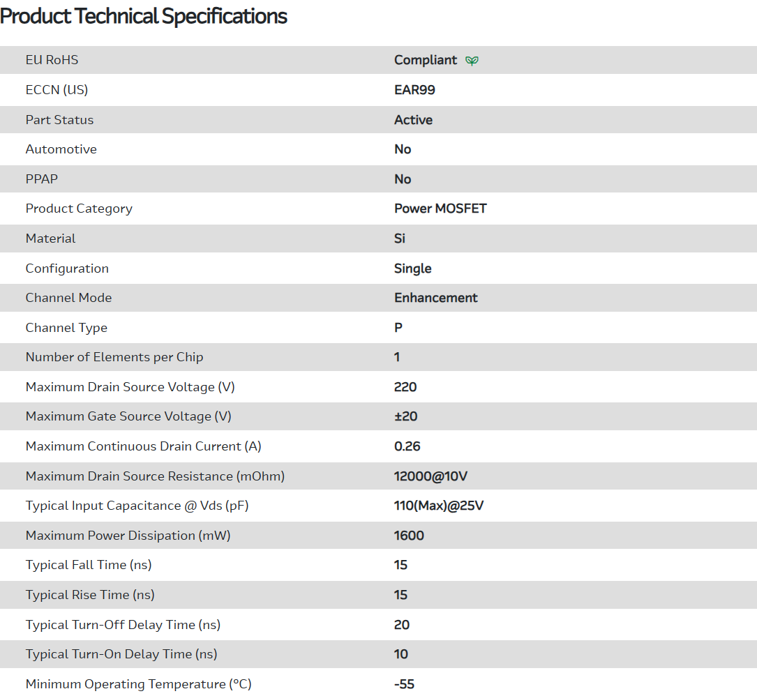 Trans MOSFET P-CH Si 220V 0.26A 4-Pin(3+Tab) SOT-89 T/R