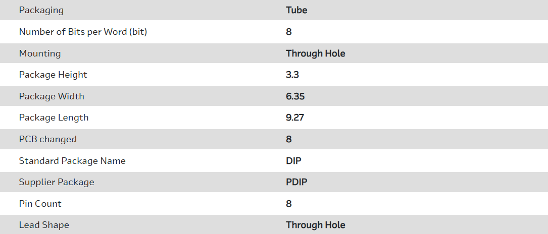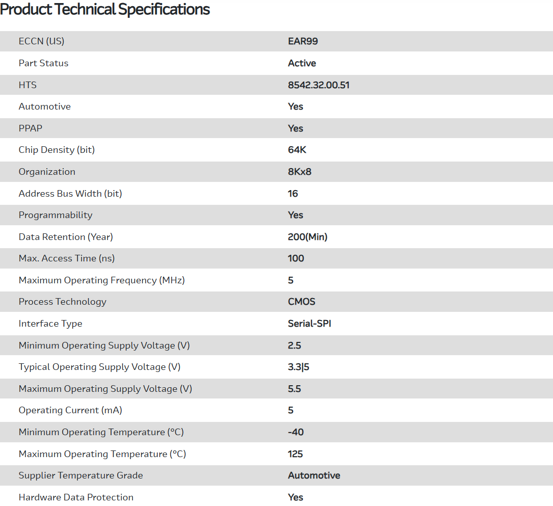 EEPROM Serial-SPI 64K-bit 8K x 8 3.3V/5V 8-Pin PDIP Tube Automotive AEC-Q100