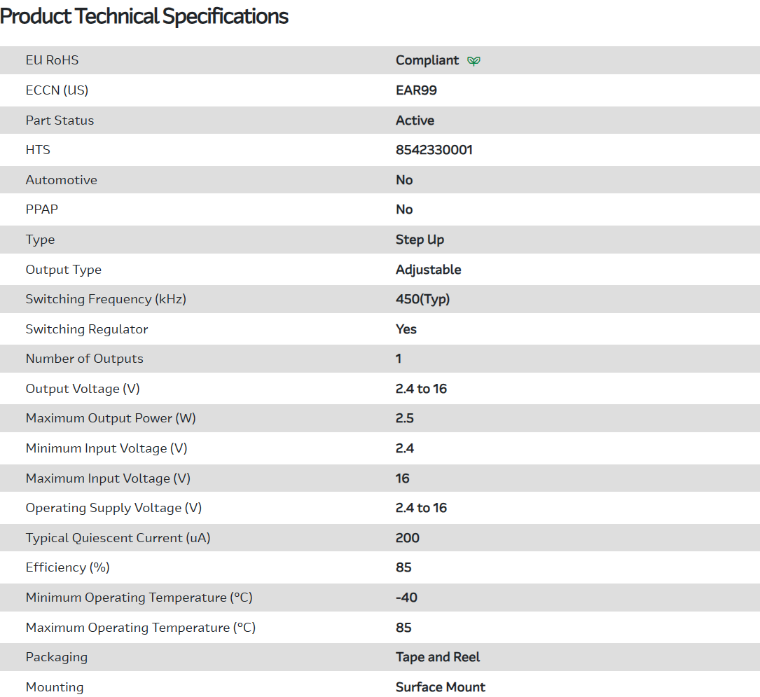 Conv DC-DC 2.4V to 16V Step Up Single-Out 2.4V to 16V 2.5W 10-Pin DFN EP T/R