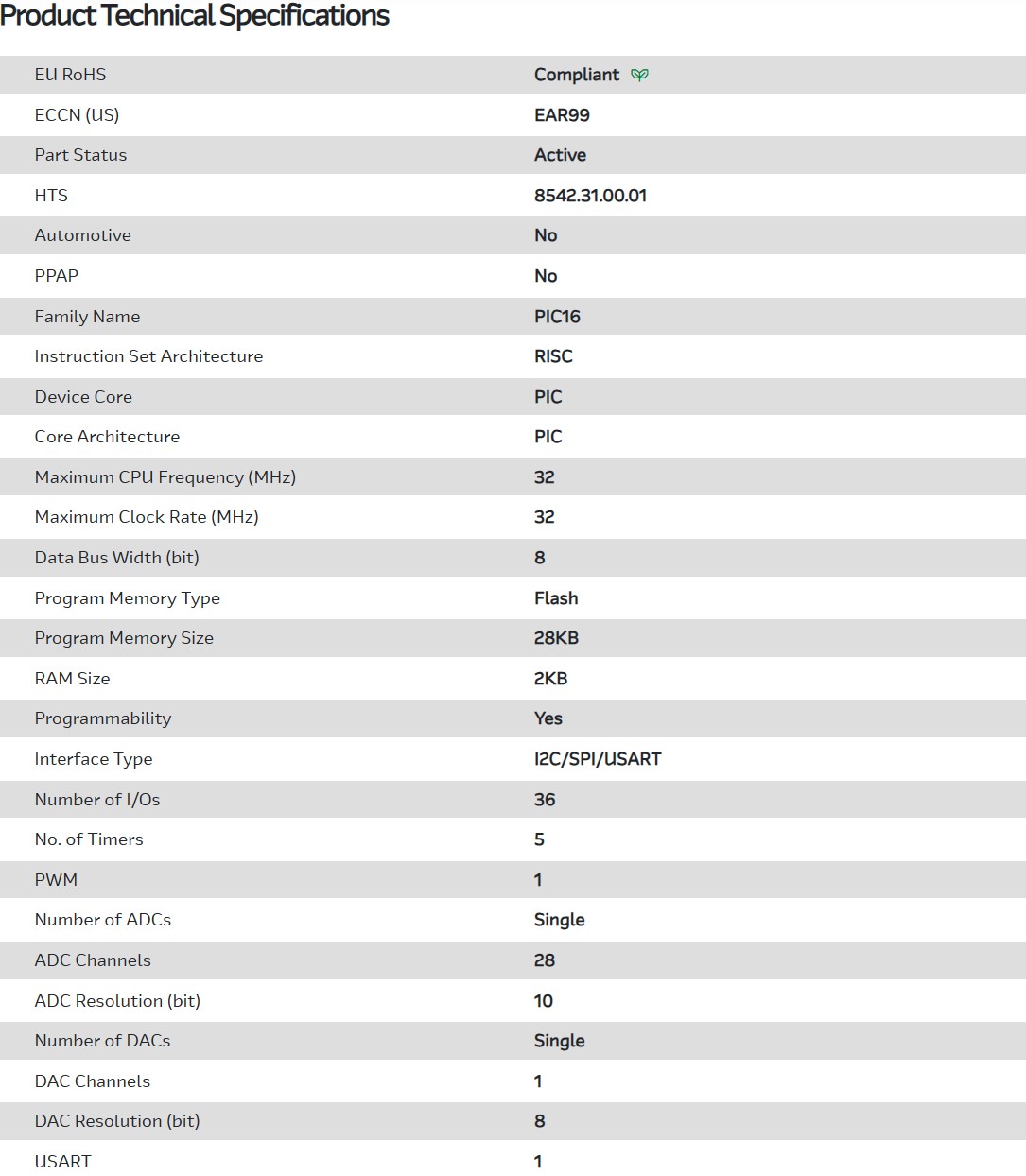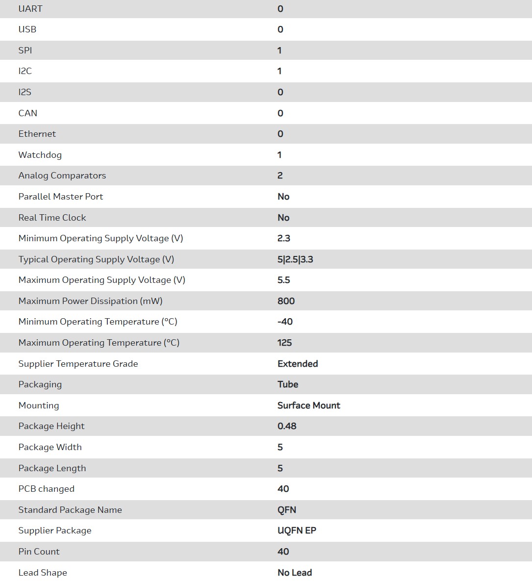 MCU 8-bit PIC RISC 28KB Flash 2.5V/3.3V/5V 40-Pin UQFN EP Tube