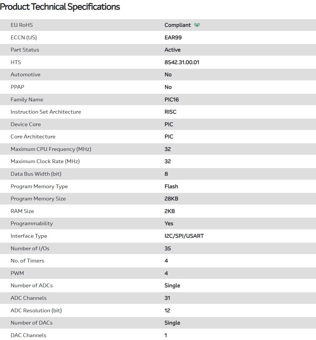 MCU 8-bit PIC RISC 28KB Flash 2.5V/3.3V 40-Pin UQFN EP Tube