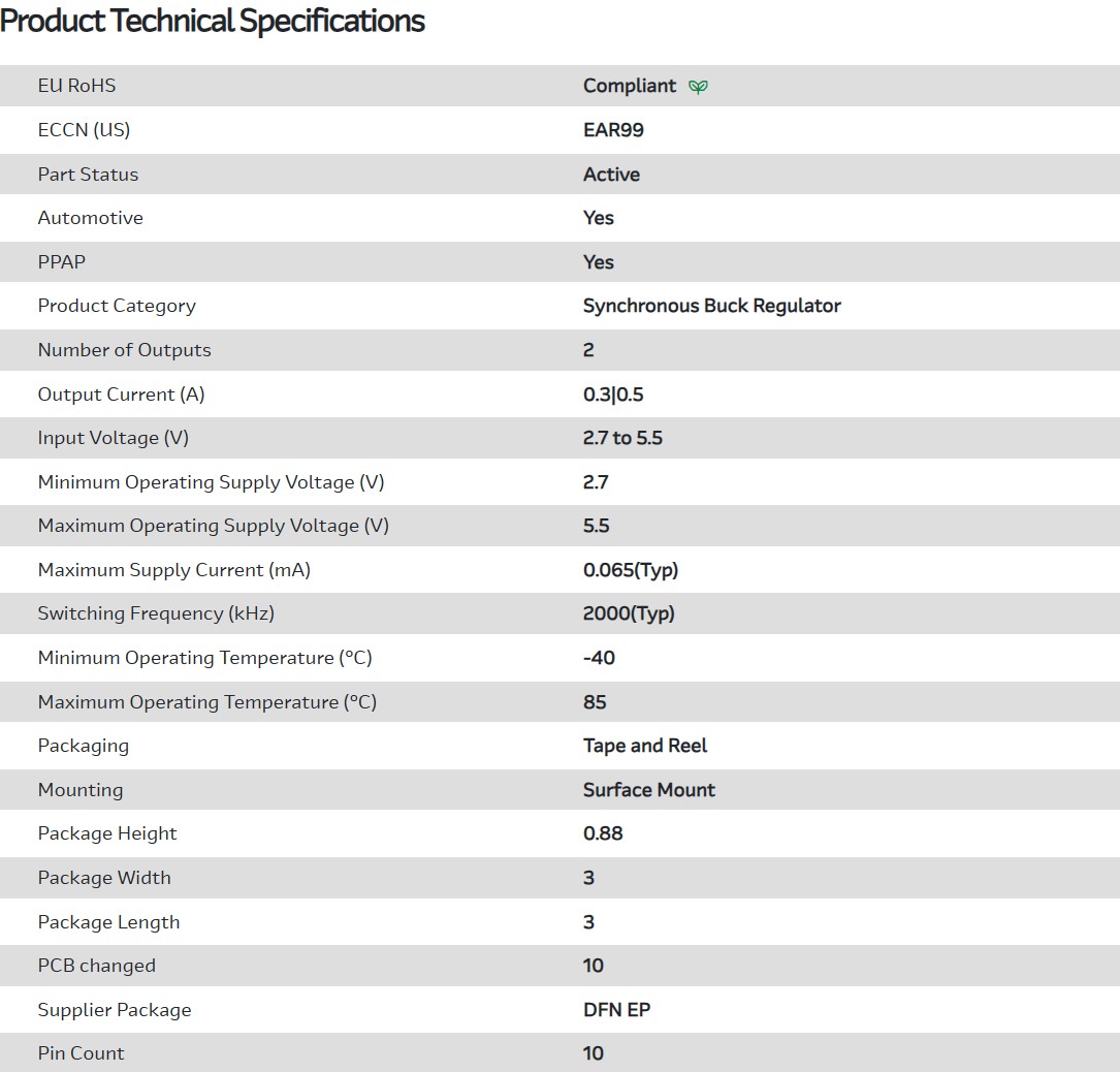 Synchronous Buck Regulator 2.7V to 5.5V Automotive AEC-Q100 10-Pin DFN EP T/R
