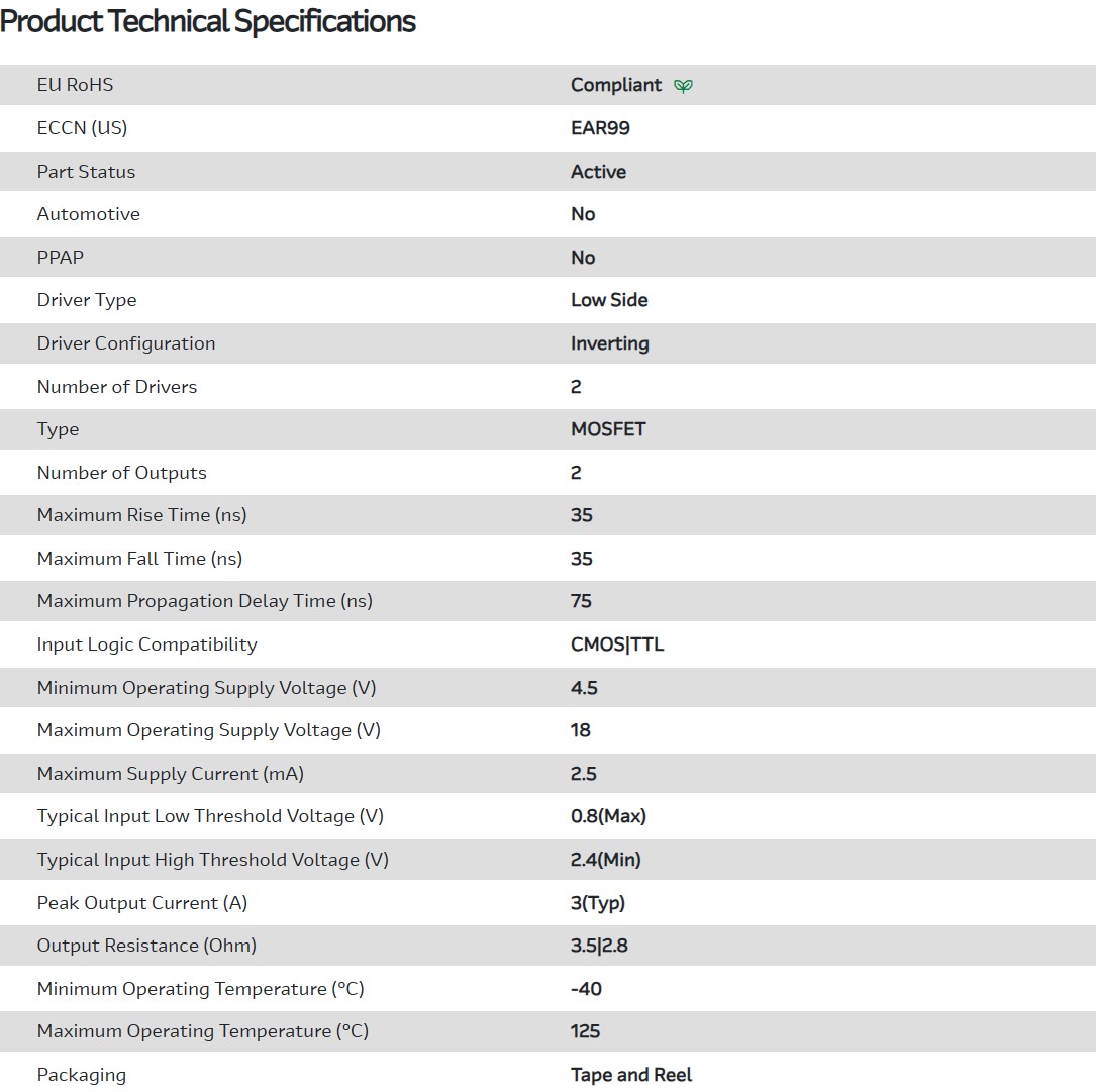 Driver 3A 2-OUT Low Side Inv 8-Pin DFN-S EP T/R