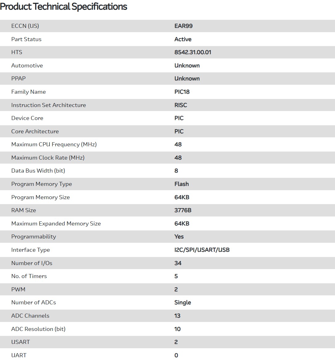 MCU 8-bit PIC RISC 64KB Flash 2.5V/3.3V 44-Pin QFN EP T/R