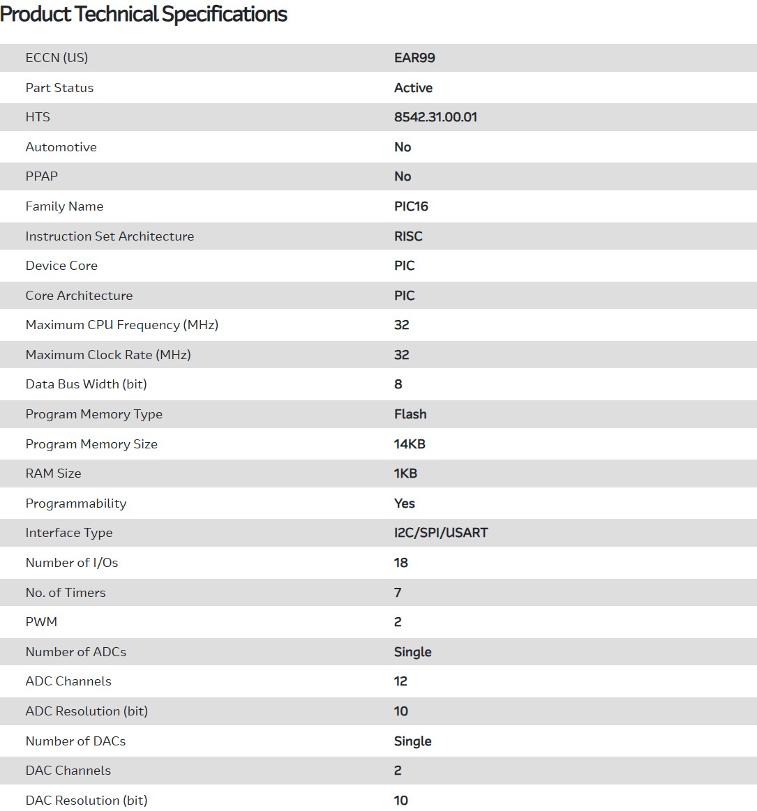 MCU 8-bit PIC RISC 14KB Flash 2.5V/3.3V/5V 20-Pin SOIC W Tube