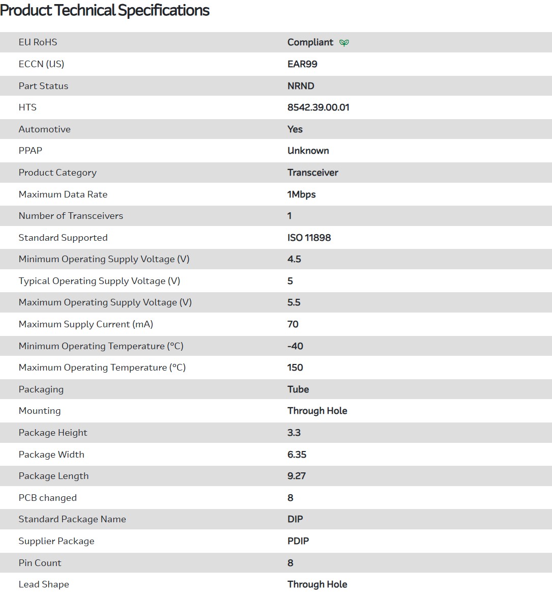 CAN 1Mbps 5V Automotive AEC-Q100 8-Pin PDIP Tube