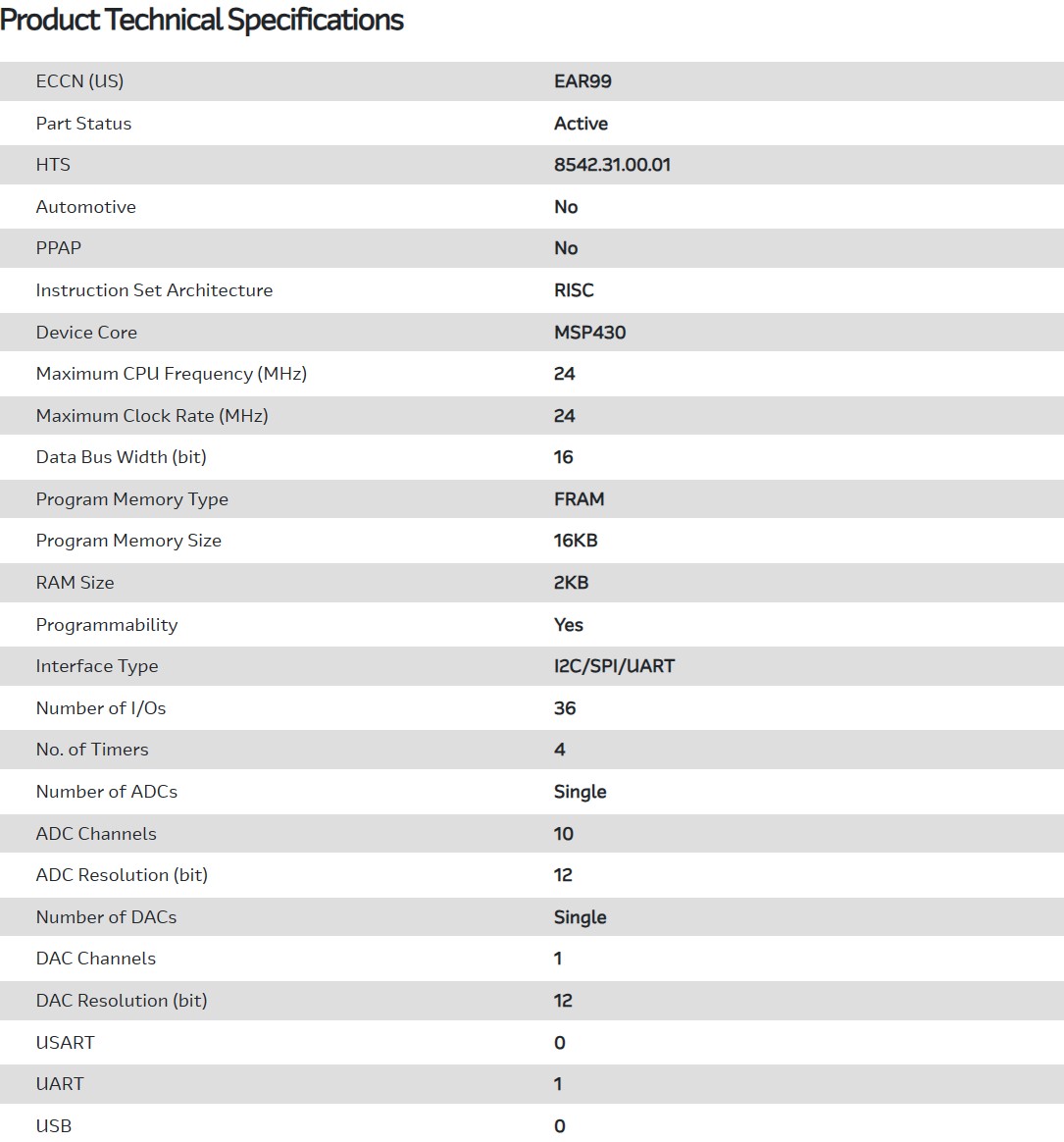 MCU 16-bit MSP430 RISC 16KB FRAM 3.3V 40-Pin VQFN EP T/R