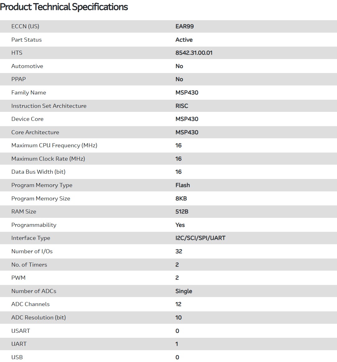 MCU 16-bit MSP430 RISC 8KB Flash 2.5V/3.3V 40-Pin VQFN EP T/R