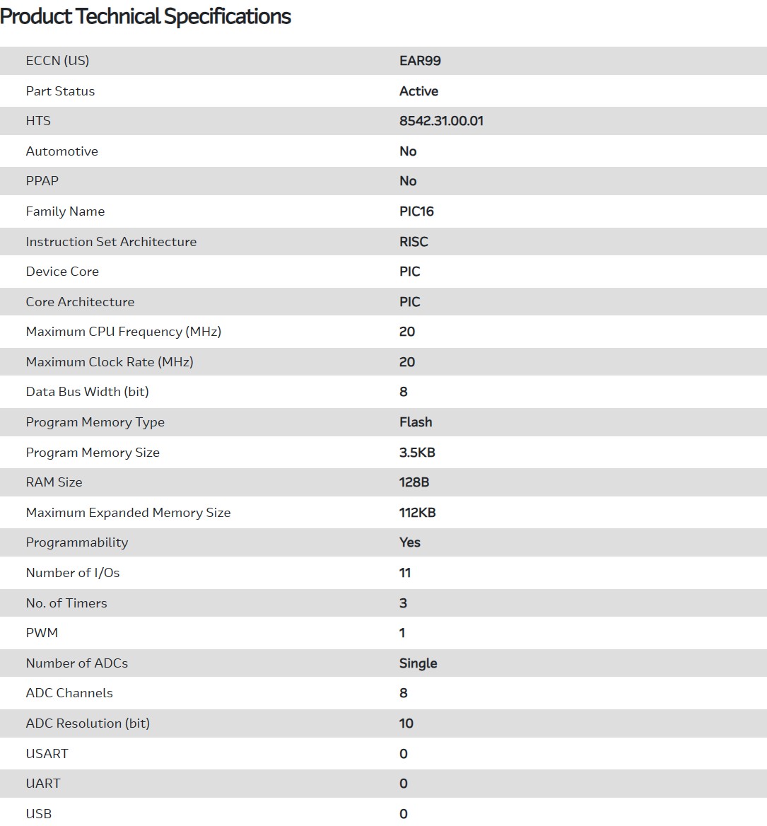 MCU 8-bit PIC RISC 3.5KB Flash 2.5V/3.3V/5V 14-Pin PDIP Tube