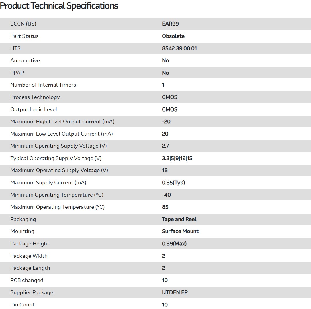 Standard Timer Single -40°C 85°C 10-Pin UTDFN EP T/R