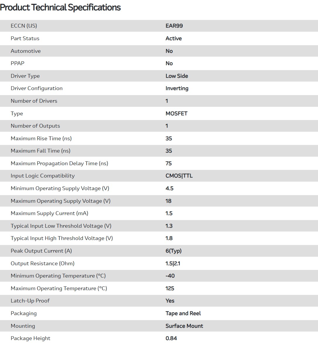 Driver 6A 1-OUT Low Side Inv 8-Pin DFN-S EP T/R