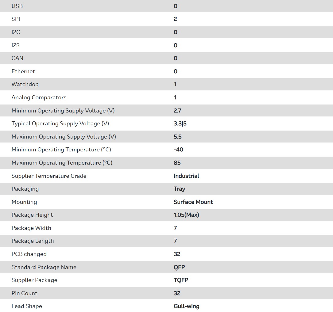 MCU 8-bit AVR RISC 16KB Flash 3.3V/5V 32-Pin TQFP Tray