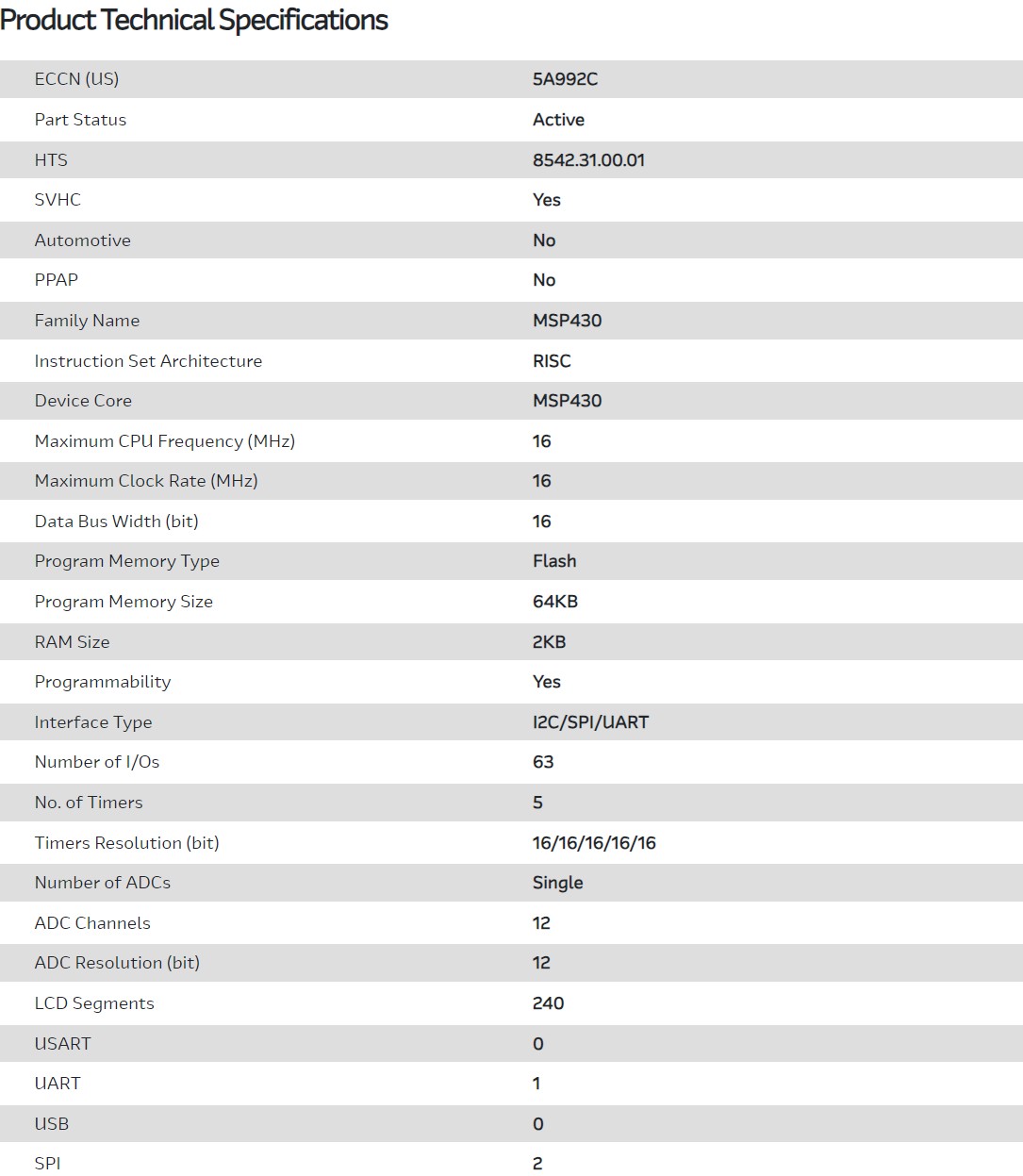 MCU 16-bit MSP430 RISC 64KB Flash 2.5V/3.3V 80-Pin LQFP Tray