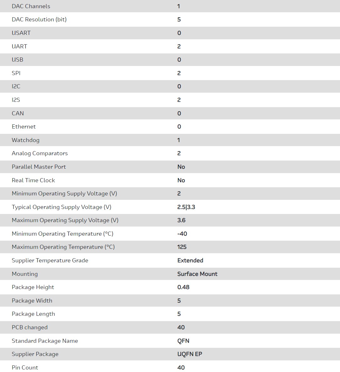 MCU 32-bit PIC RISC 64KB Flash 2.5V/3.3V 40-Pin UQFN EP Tube