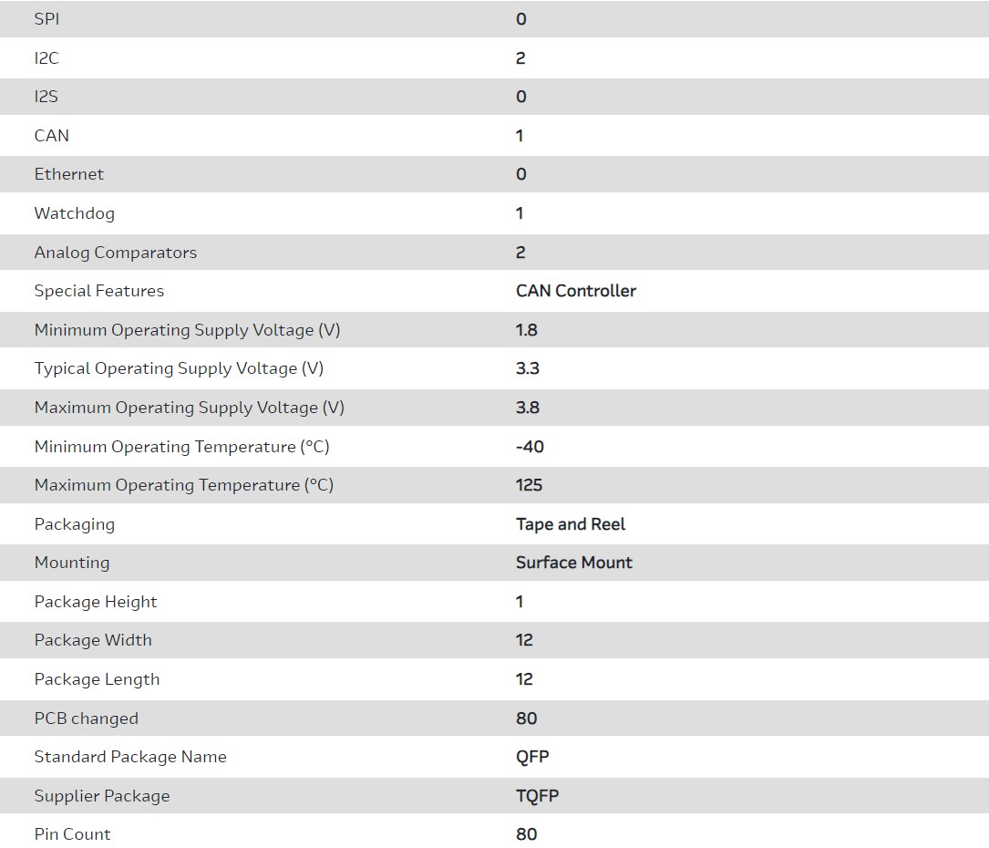 MCU 32-bit ARM Cortex M0+ RISC 64KB Flash 3.3V 80-Pin TQFP T/R