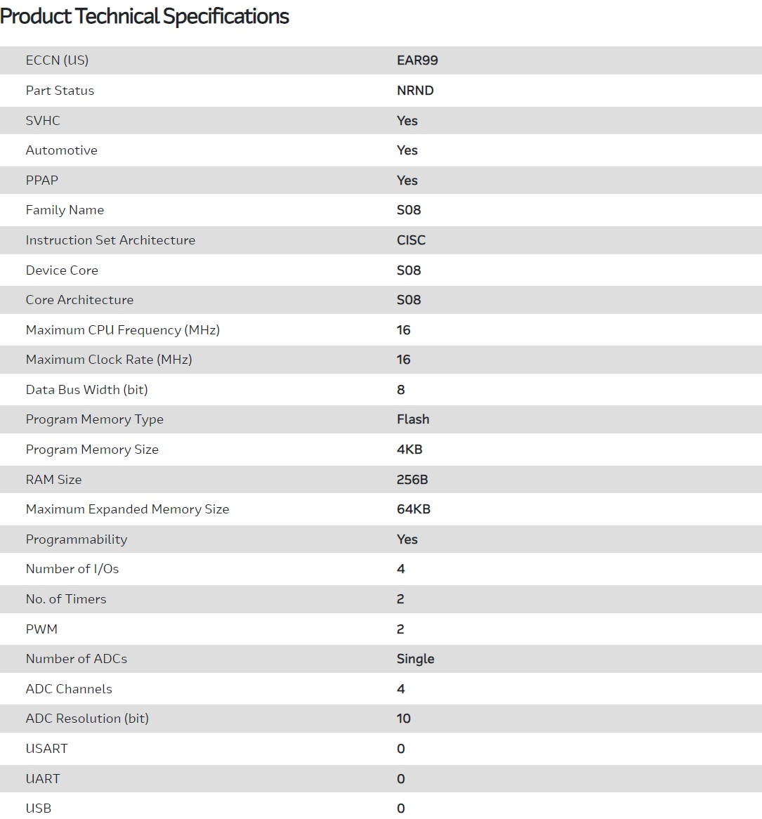 MCU 8-bit S08 CISC 4KB Flash 3.3V/5V Automotive AEC-Q100 8-Pin SOIC N T/R