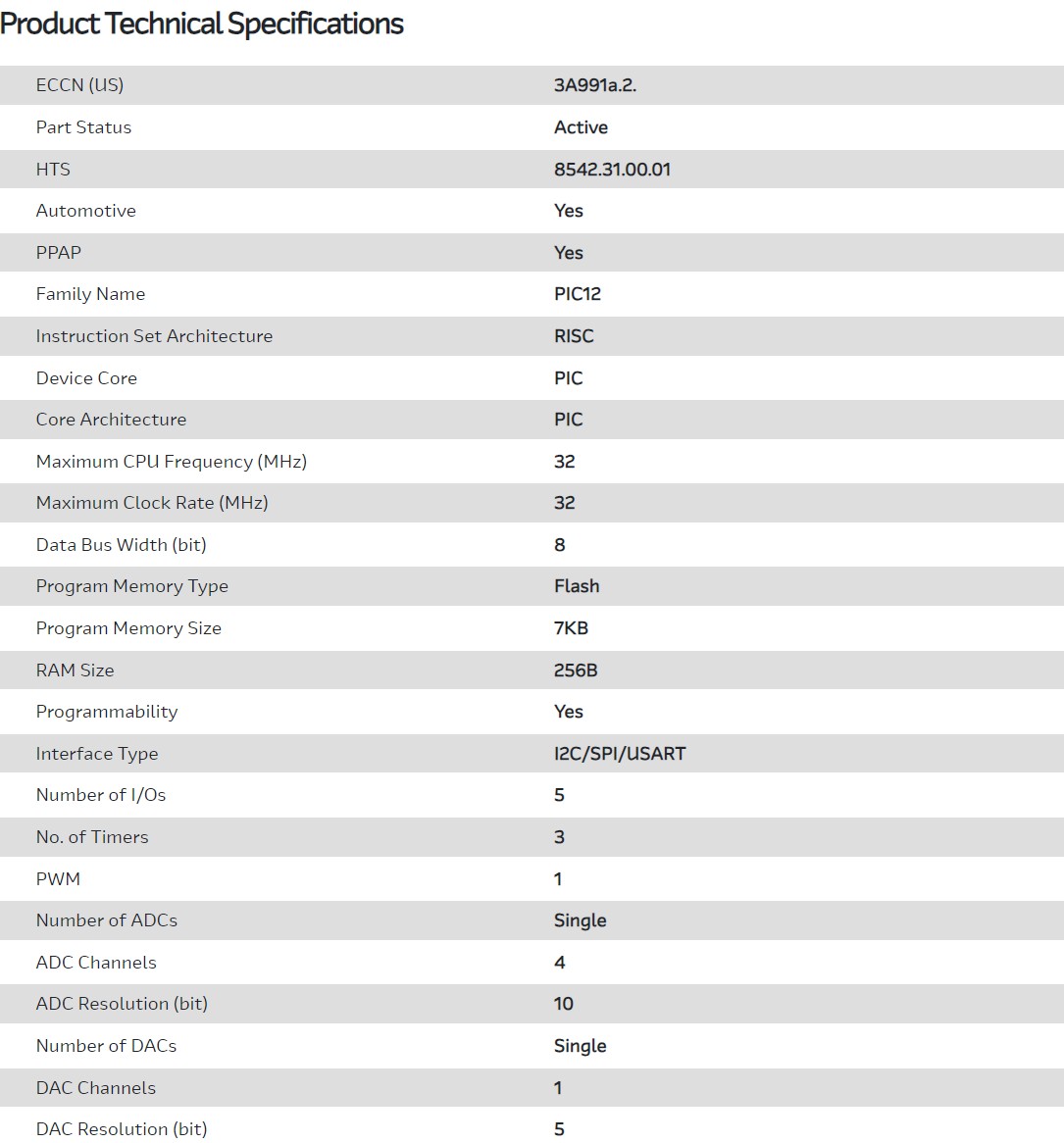 MCU 8-bit PIC RISC 7KB Flash 3.3V/5V Automotive AEC-Q100 8-Pin DFN EP Tube
