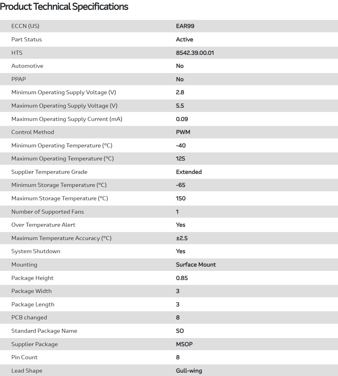 PWM Fan Controller 65degc Acctive Low 8MSOP