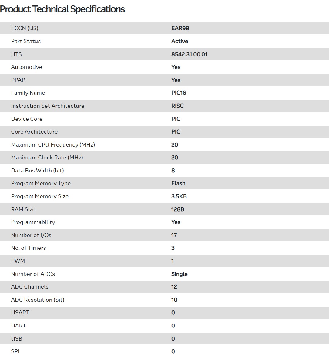 MCU 8-bit PIC RISC 3.5KB Flash 3.3V/5V Automotive AEC-Q100 20-Pin UQFN EP Tube
