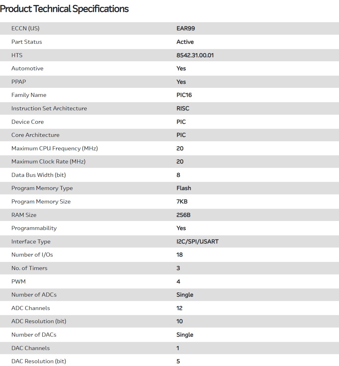 MCU 8-bit PIC RISC 7KB Flash 2.5V/3.3V/5V Automotive AEC-Q100 20-Pin UQFN EP Tube