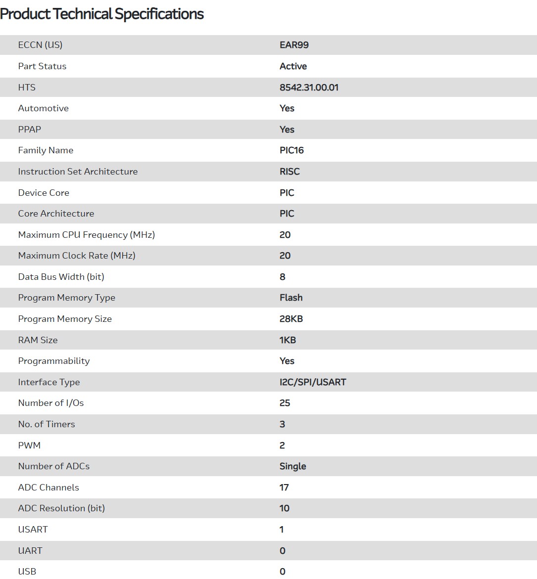 MCU 8-bit PIC RISC 28KB Flash 2.5V/3.3V/5V Automotive AEC-Q100 28-Pin UQFN EP Tube