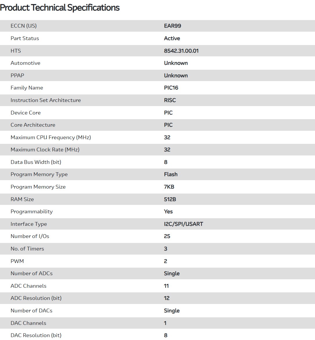 MCU 8-bit PIC RISC 3.5KB Flash 2.5V/3.3V/5V 28-Pin UQFN EP Tube