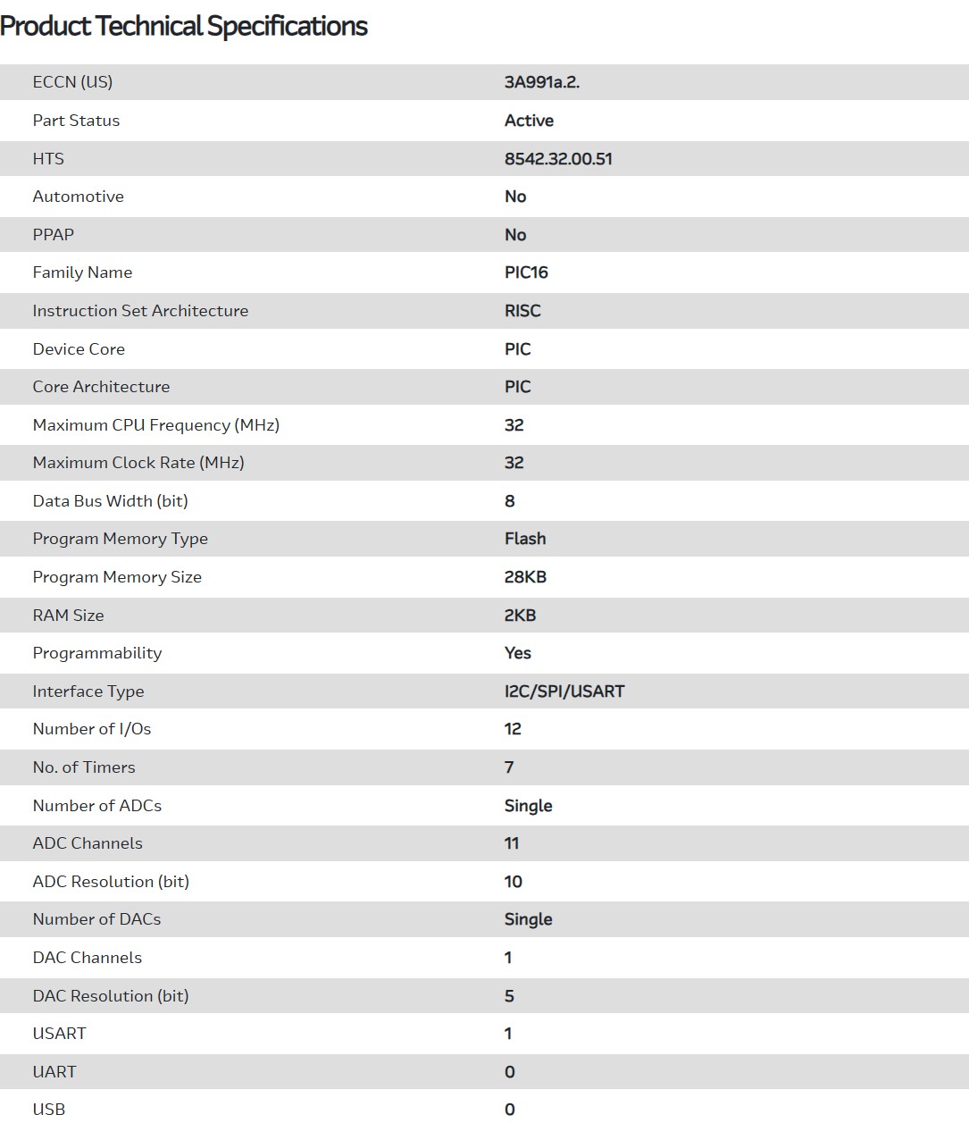 MCU 8-bit PIC RISC 28KB Flash 2.5V/3.3V/5V 16-Pin UQFN EP Tube