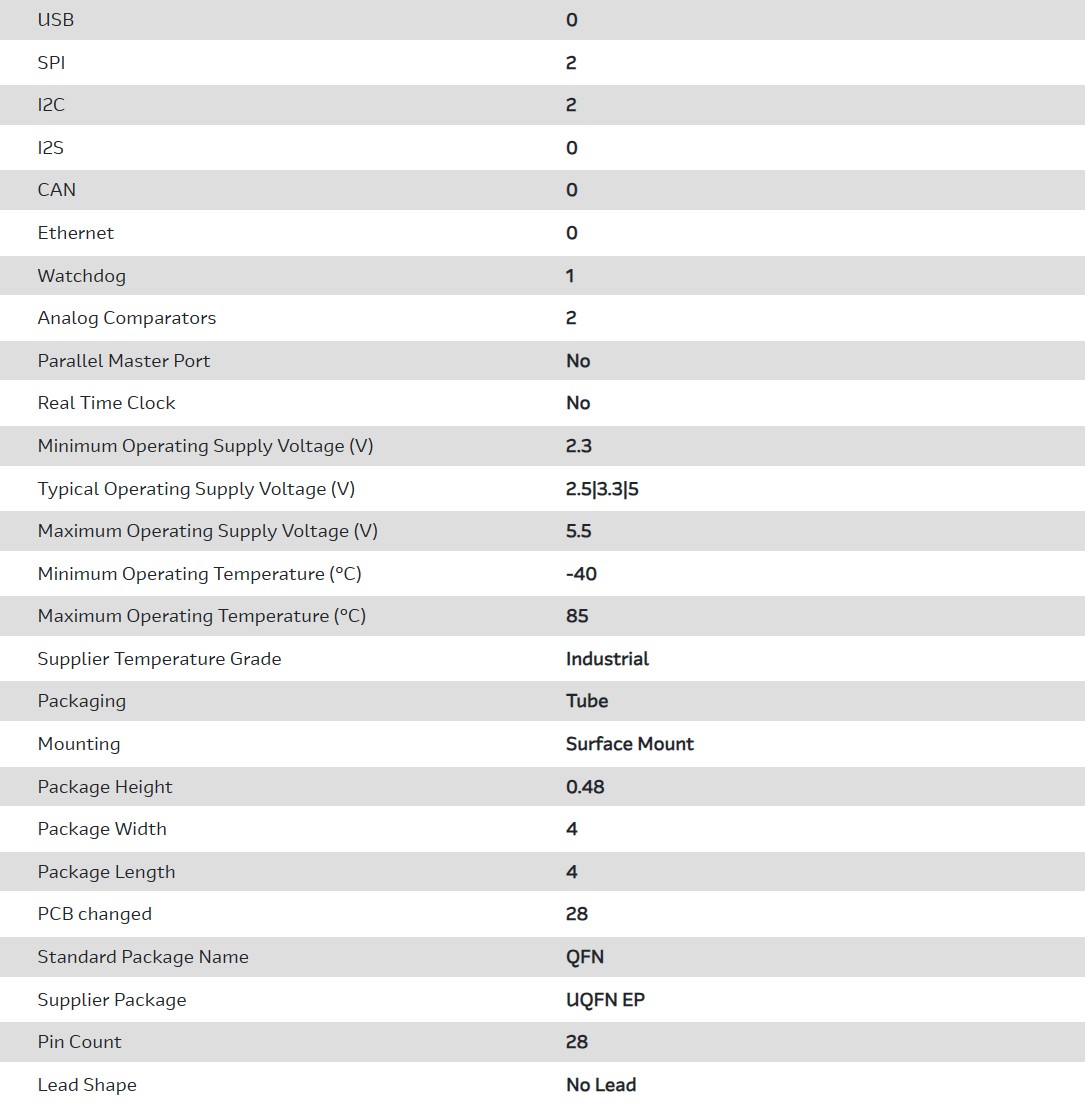 MCU 8-bit PIC RISC 7KB Flash 2.5V/3.3V/5V 28-Pin UQFN EP Tube