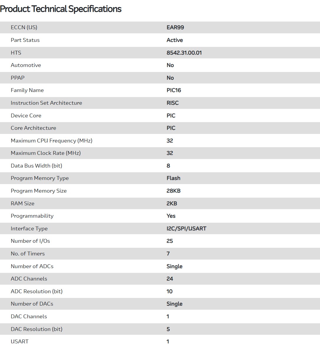 MCU 8-bit PIC RISC 28KB Flash 2.5V/3.3V/5V 28-Pin UQFN EP Tube