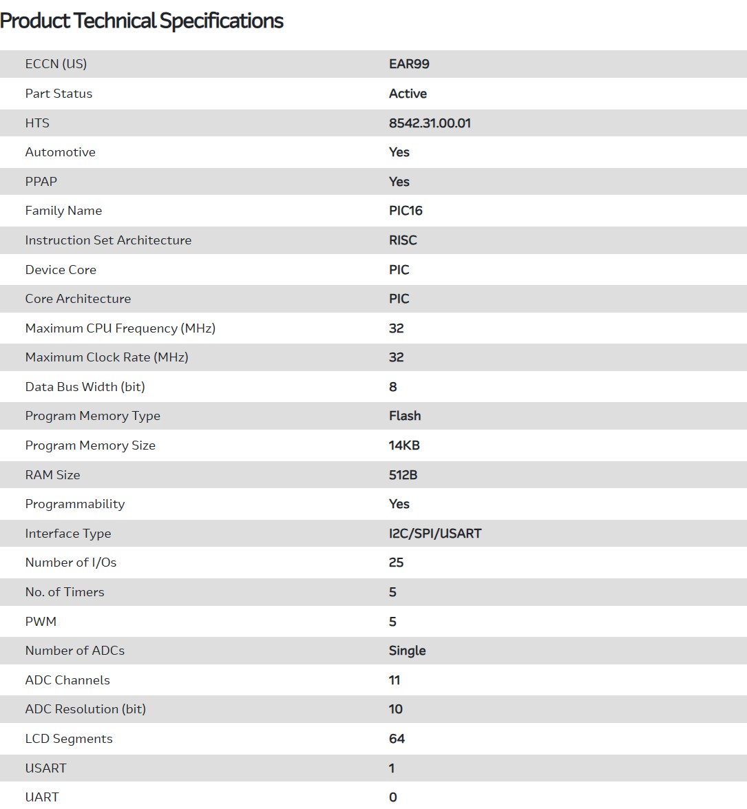 MCU 8-bit PIC RISC 14KB Flash 2.5V/3.3V/5V Automotive AEC-Q100 28-Pin UQFN EP Tube