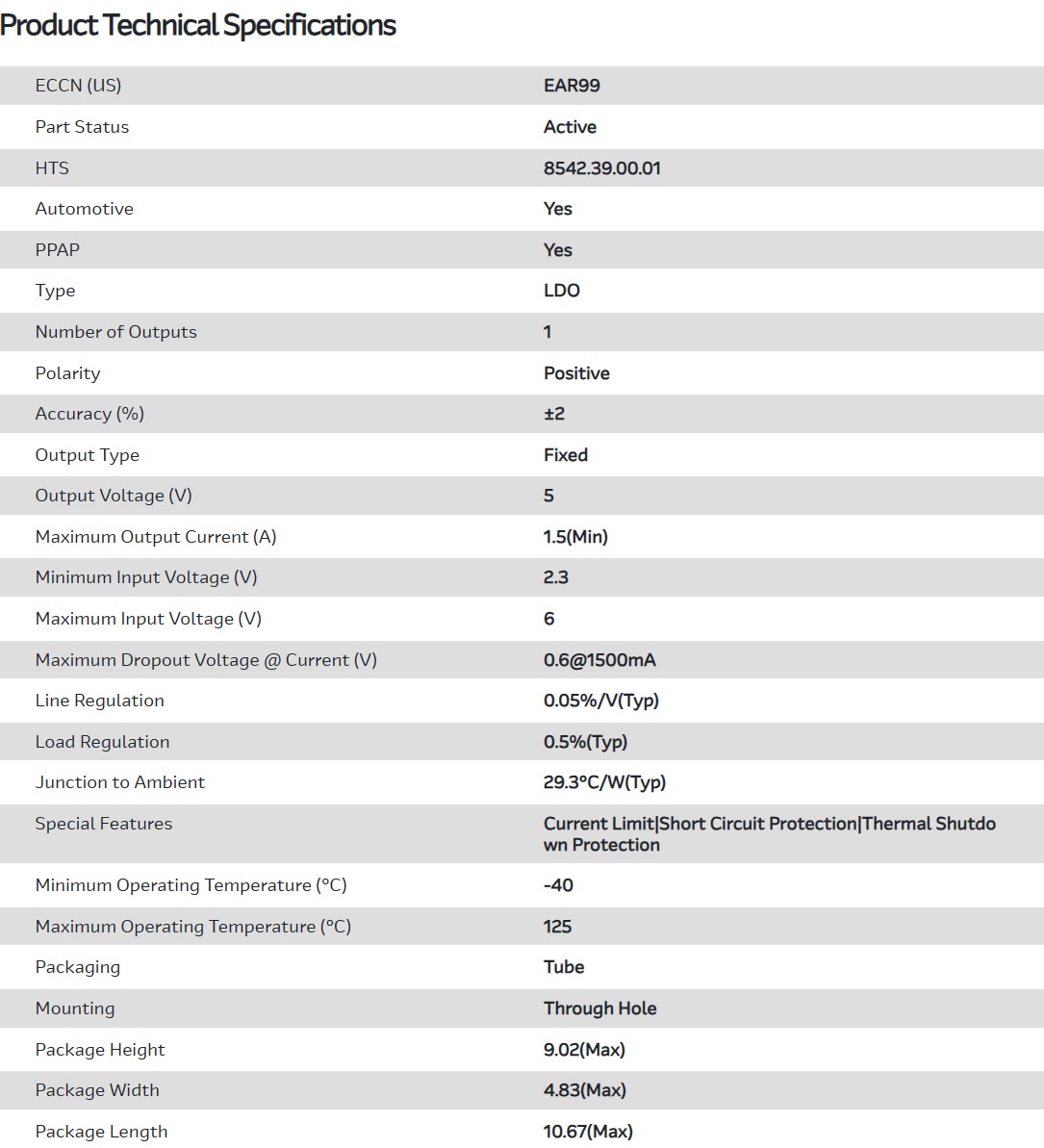LDO Regulator Pos 5V 1.5A Automotive AEC-Q100 5-Pin(5+Tab) TO-220 Tube