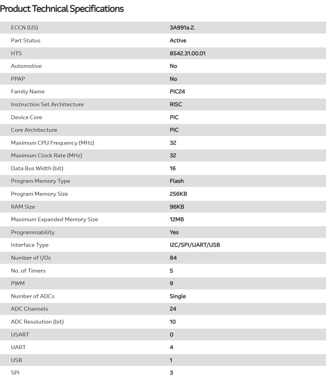 | Part Number | PIC24FJ256DA210T-I/PT |