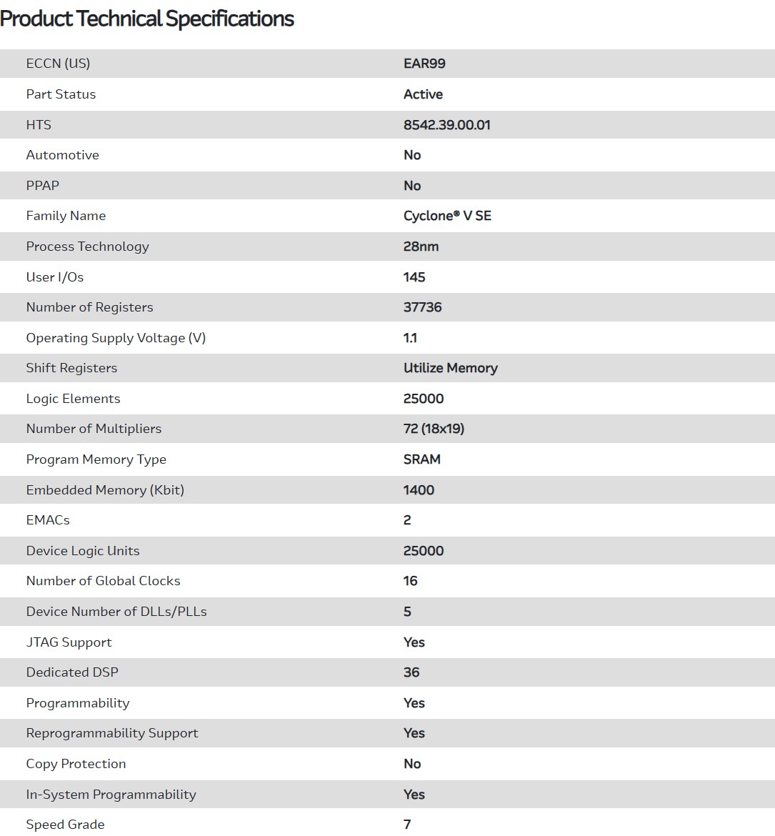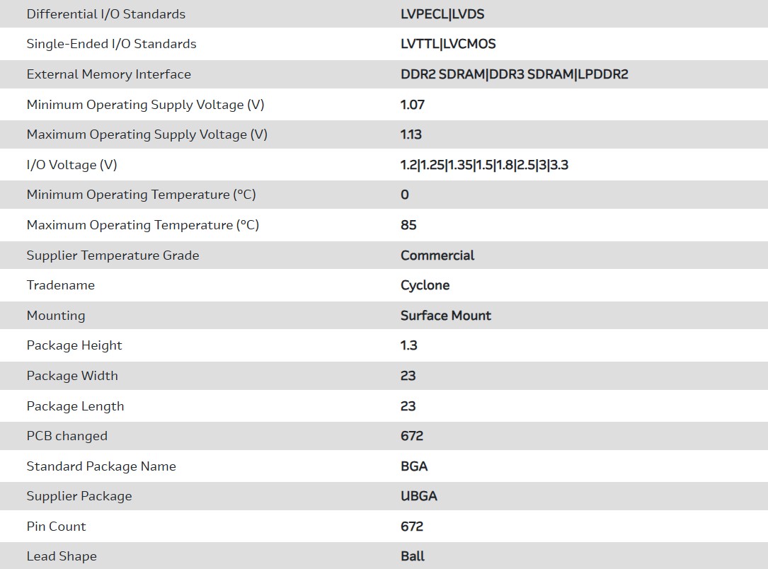 | Part Number | 5CSEBA2U23C7SN |