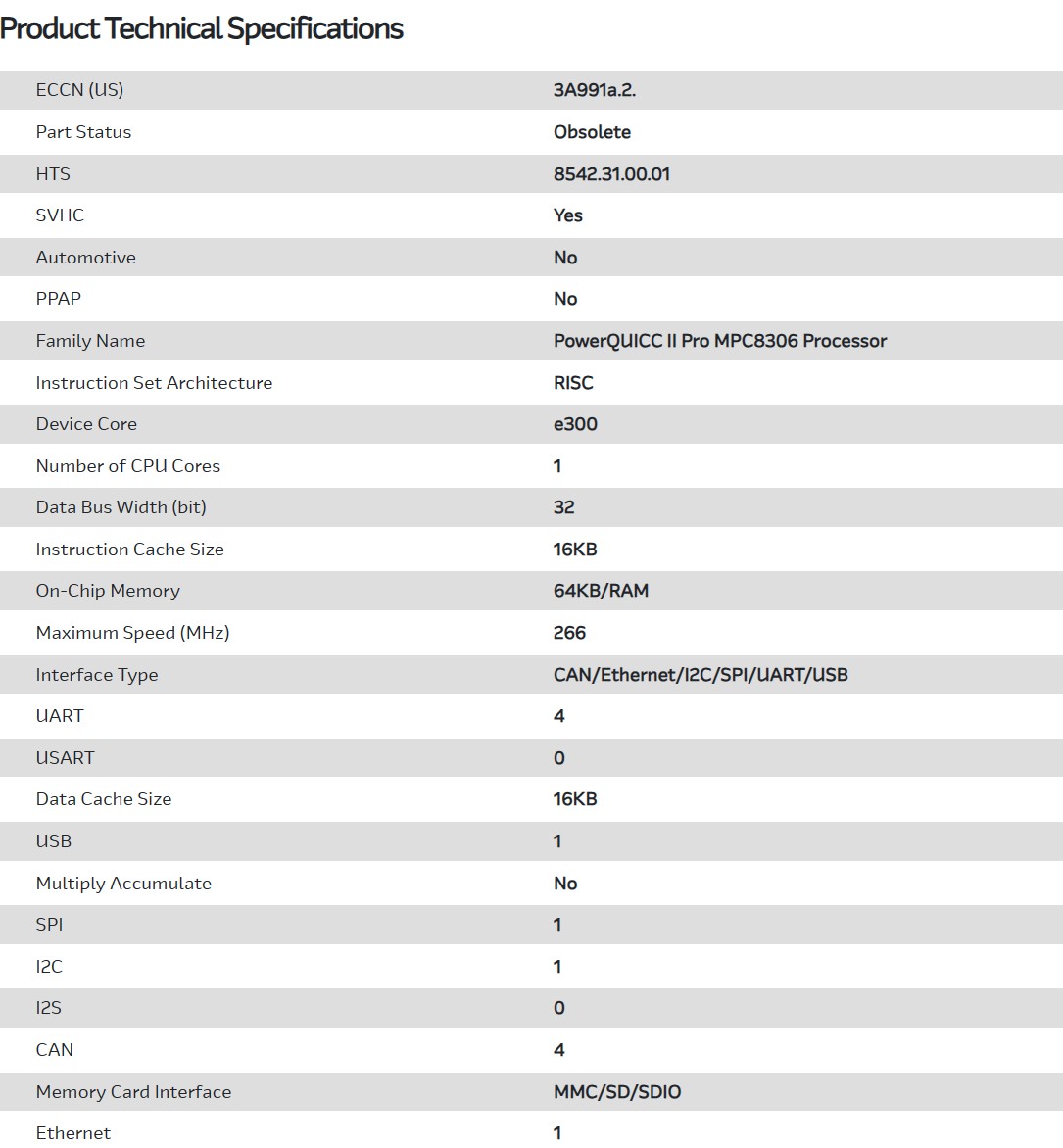 MPU PowerQUICC II Pro MPC8306 Processor RISC 32bit 0.09um 266MHz 56V 369-Pin MAP-BGA Tray