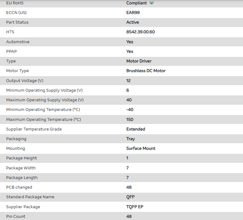3-Phase Brushless DC Motor Driver Automotive AEC-Q100 48-Pin TQFP Tray
