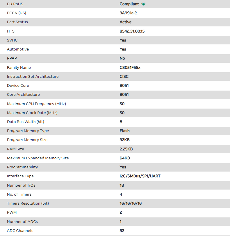 8051 50 MHz 32 kB 5 V 8-bit MCU
