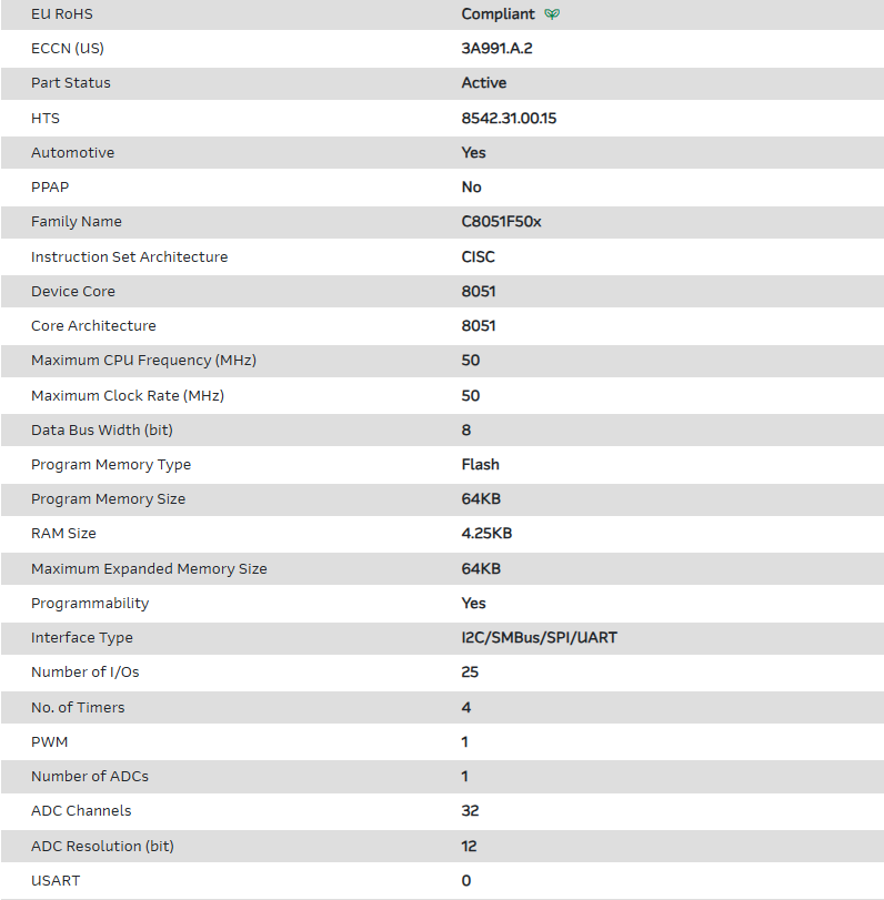8051 50 MHz 64 kB 5 V 8-bit MCU
