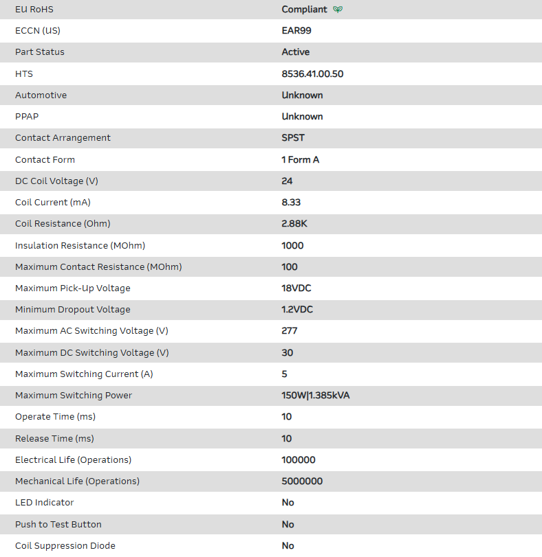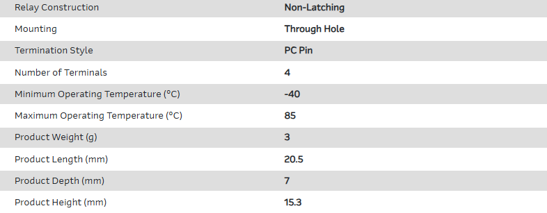 Power Relay 24VDC 5A SPST(20.5x7x15.3)mm THT