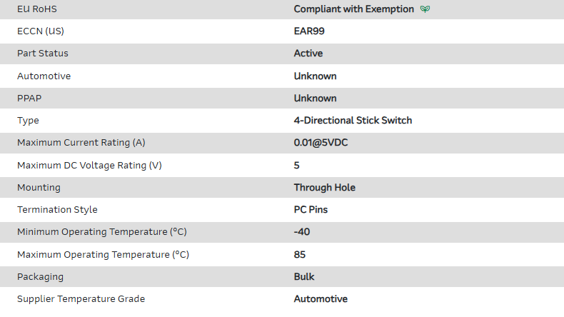 Electromechanical Switch 4-Directional Stick Switch 0.01A Bulk