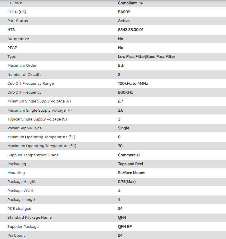Active Filter Dual Low Pass/Band Pass 5th Order 900KHz 24-Pin QFN EP T/R