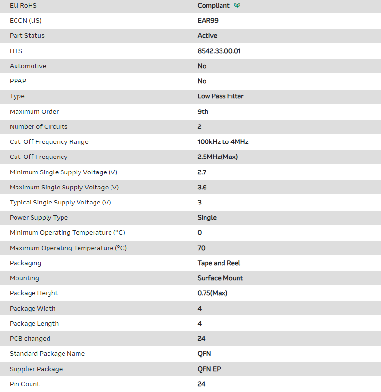 Active Filter Dual Low Pass 9th Order 2.5MHz 24-Pin QFN EP T/R