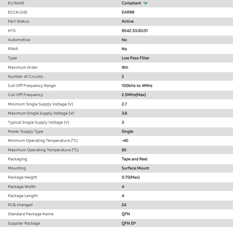 Active Filter Dual Low Pass 9th Order 2.5MHz 24-Pin QFN EP T/R