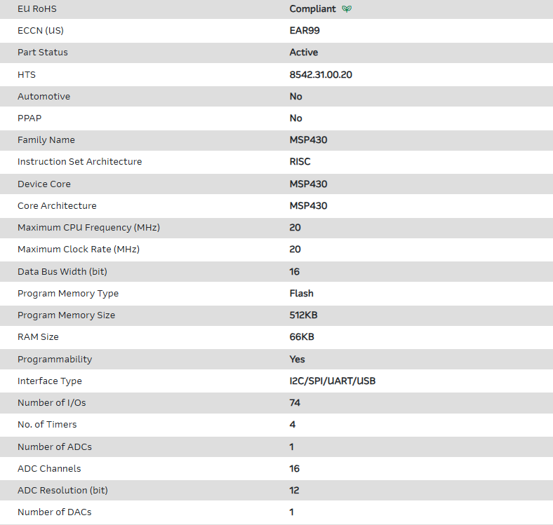 MCU 16-bit MSP430 RISC 512KB Flash 2.5V/3.3V 100-Pin LQFP T/R