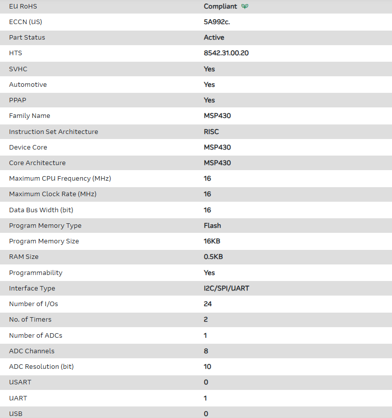 MCU 16-bit MSP430 RISC 16KB Flash 2.5V/3.3V Automotive 28-Pin TSSOP T/R