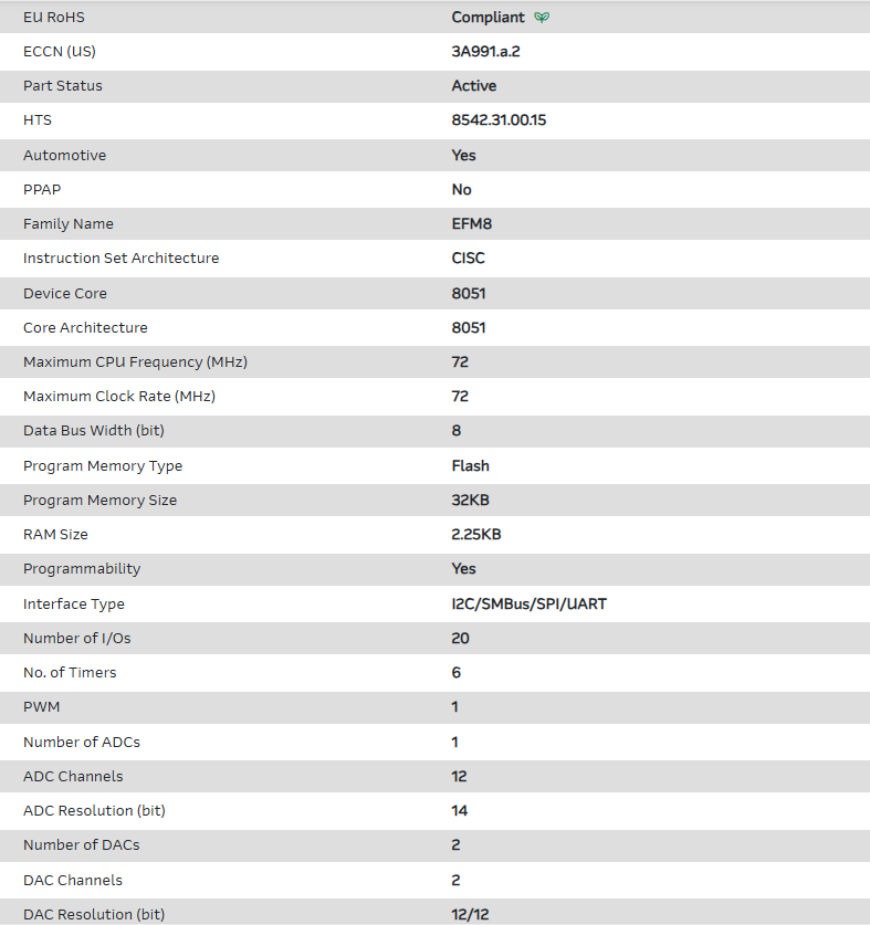| Part Number | EFM8LB11F32ES0 C QFN24R |