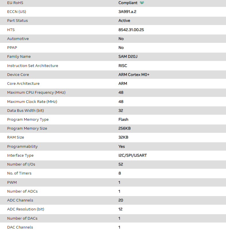 | Part Number | ATSAMD20J18A CUT |