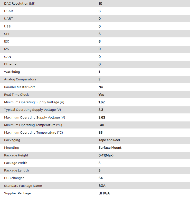 MCU 32-bit ARM Cortex M0+ RISC 256KB Flash 3.3V 64-Pin UFBGA T/R