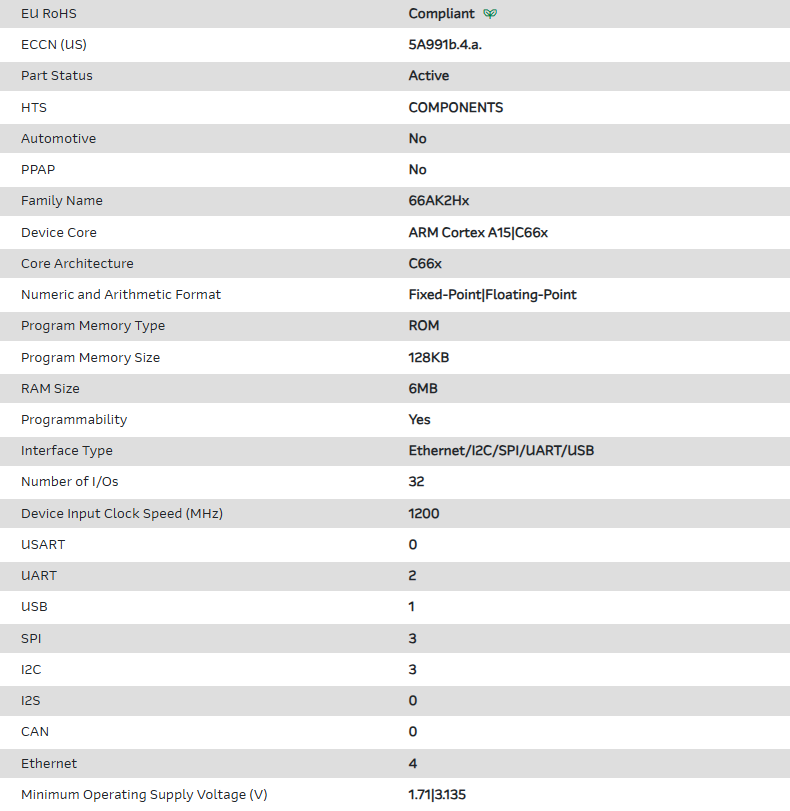 66AK2H14DAAWA24 德州仪器