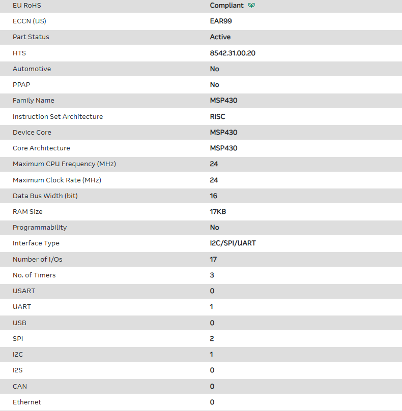 MCU 16-bit MSP430 RISC 2.5V/3.3V 24-Pin VQFN EP T/R