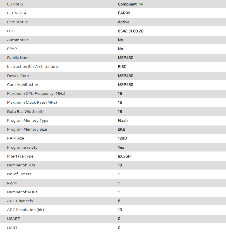 MCU 16-bit MSP430 RISC 2KB Flash 2.5V/3.3V 14-Pin TSSOP T/R